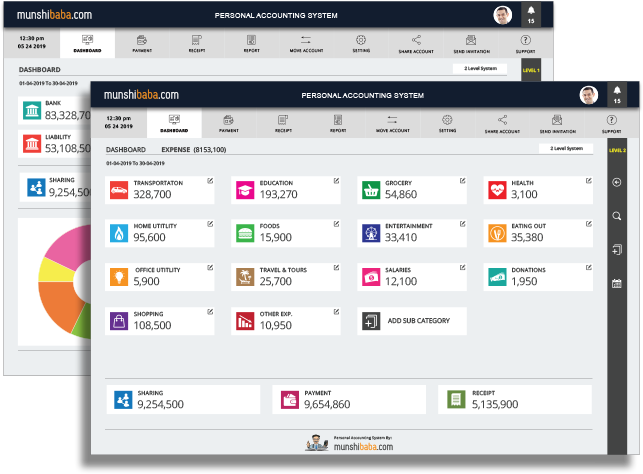 Best for simple businesses or home accounting, students and house wives. Simple account maintenance and is very easy to share accounts with family, friends and or business partners. Besides, when you are comfortable using the single level system, you can easily switch to 2 level or 3 level system and vice versa. munshibaba.com provides you ease of switching from one system to another and that too very easily.